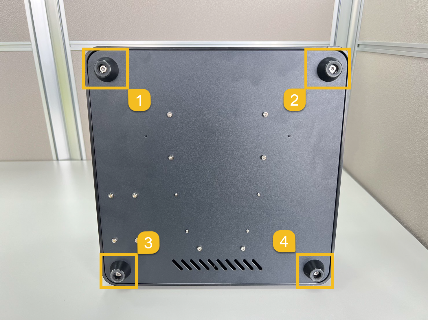 - Use a size 3 Allen wrench to remove the 4 screws and open the bottom case.
