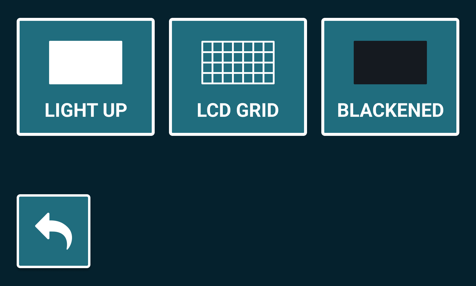 - On the LCD screen, a bright blue square will appear, while the entire screen is illuminated. Run this test to make sure the UV lights are distributed evenly.