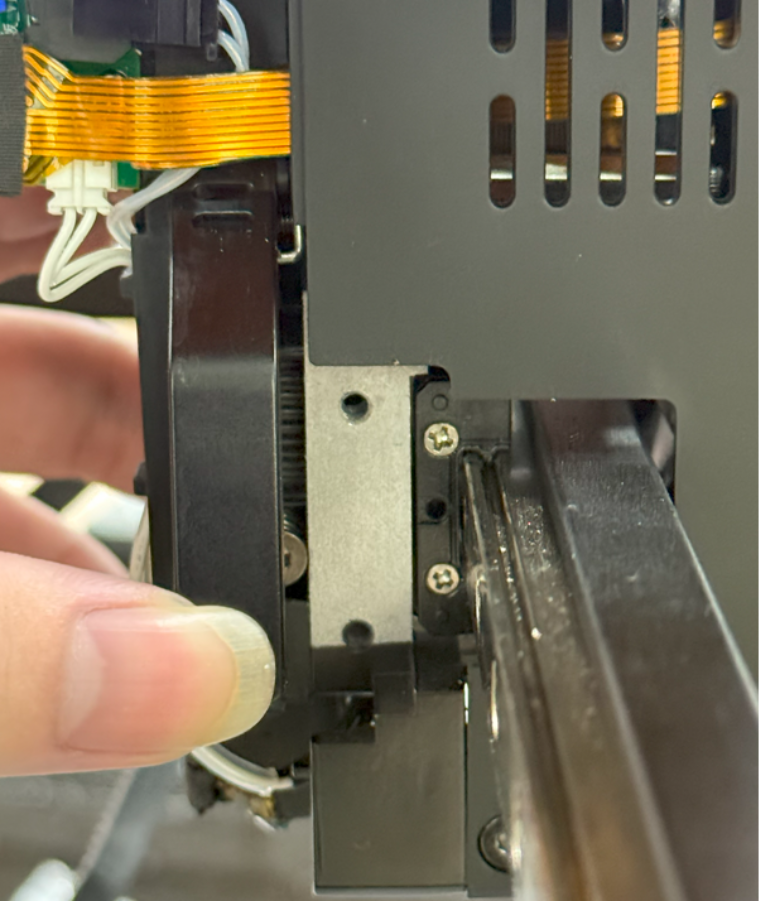 - Insert forward into the left slider, keeping it parallel to the X-axis belt.