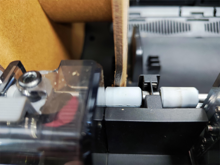 - Spool Jammed: Deformed edges prevent rotation, or the spool is too wide and falls into the roller gap.