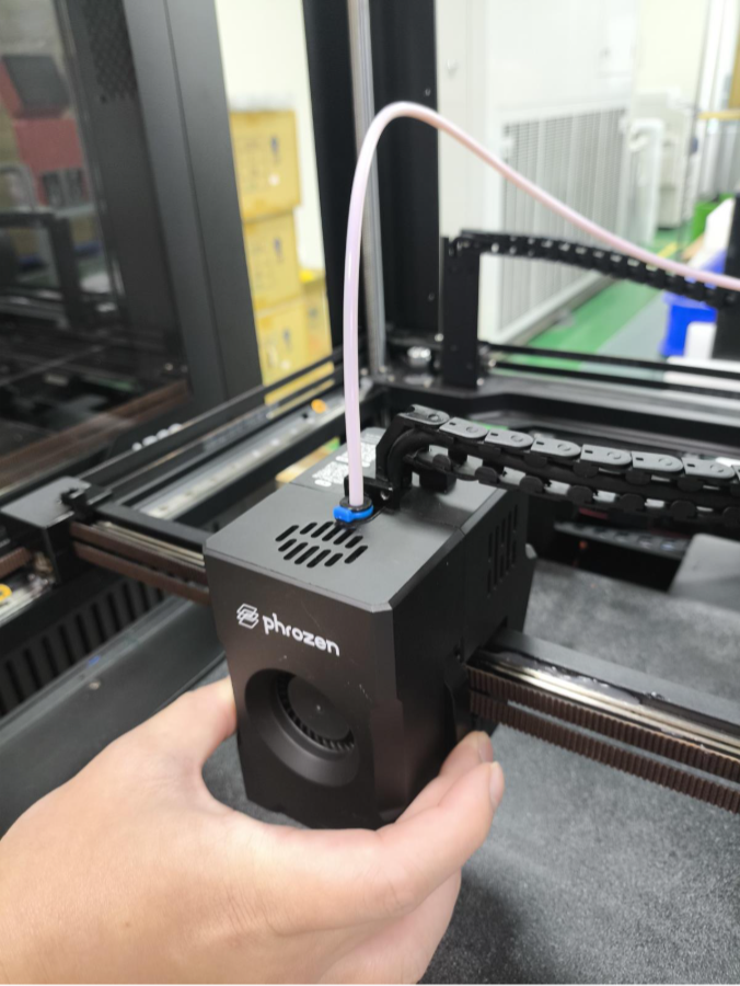 - Insert the new filament into the PTFE tube until you feel resistance inside the extruder.