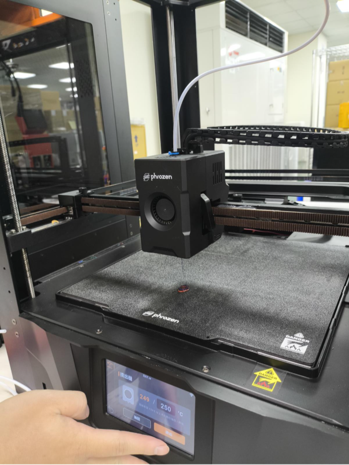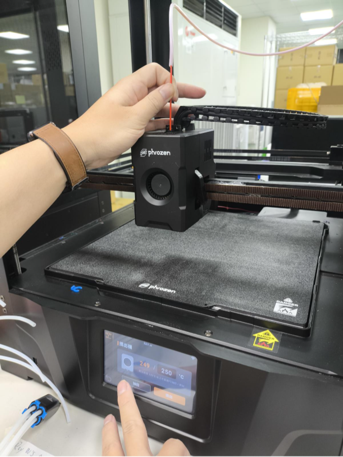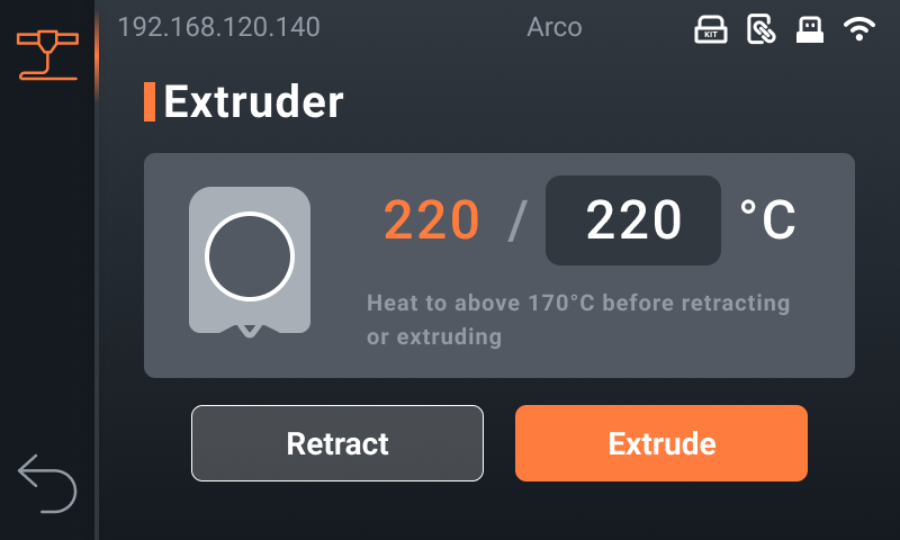 - Manually push the filament and click Extrude 1–2 times until the hotend extrudes the new filament.