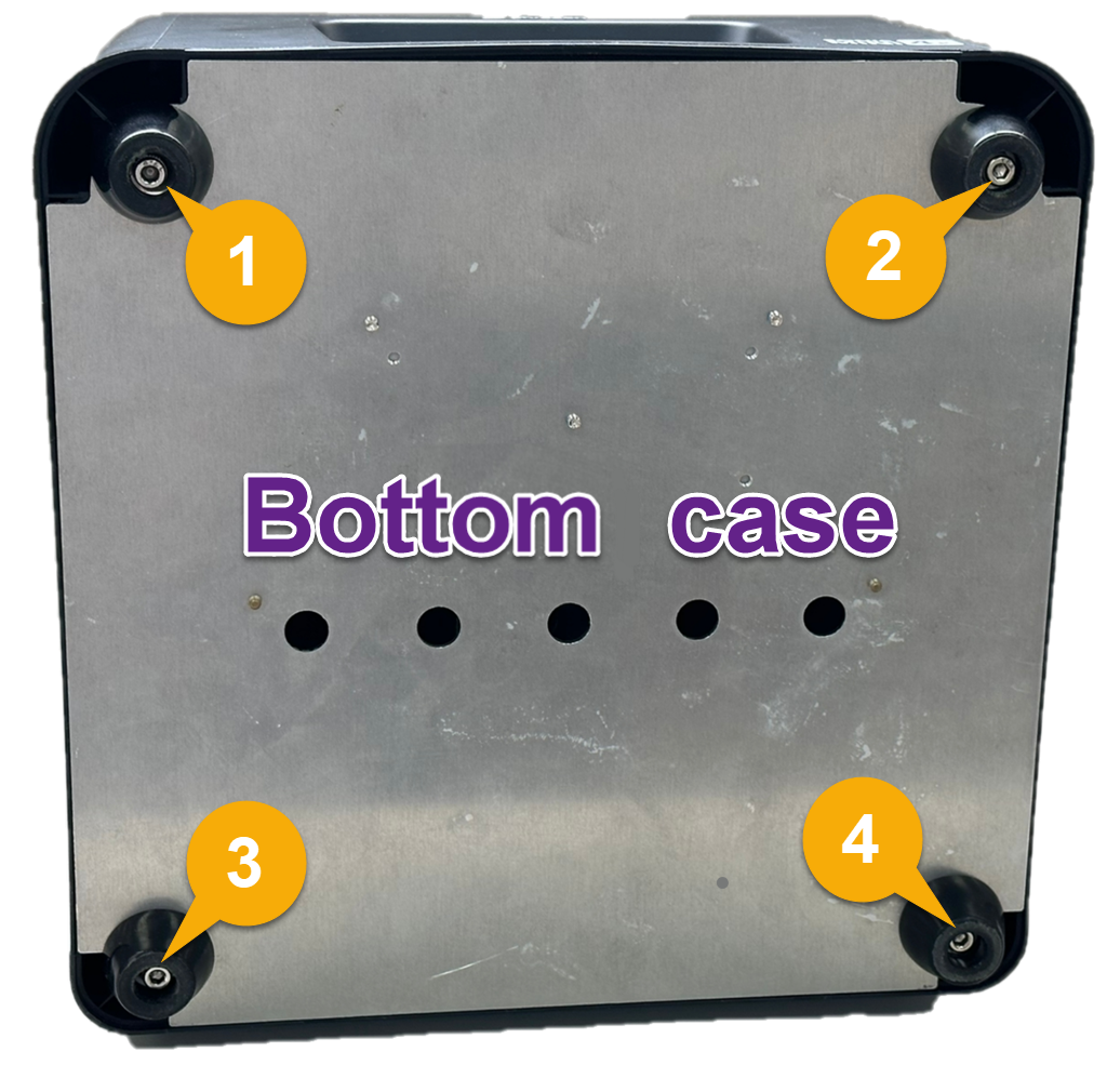 - Loosen the 4 screws on the bottom case, and then open the case.