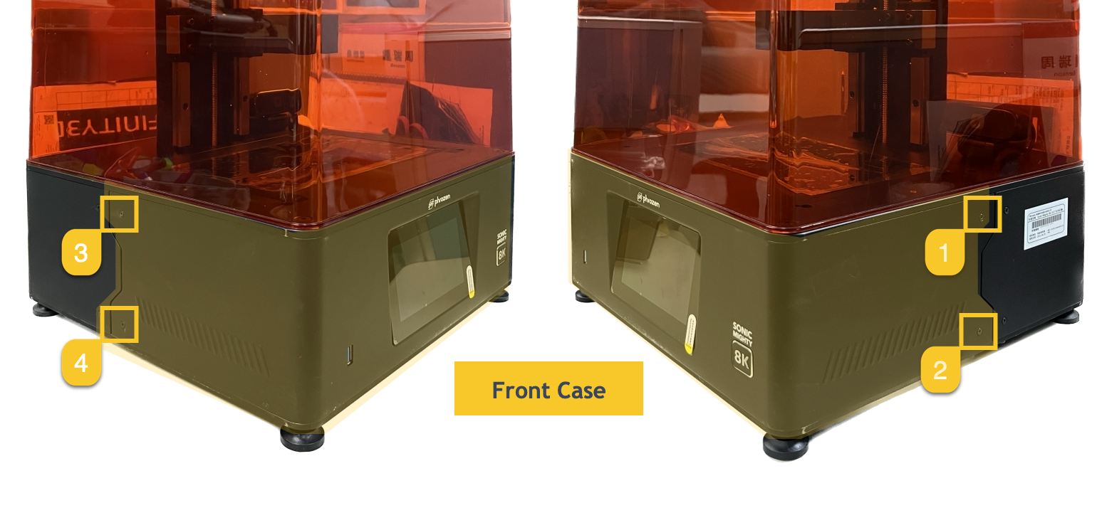 - 紧固前盖上的 4 颗螺丝和后盖上的 8 颗螺丝