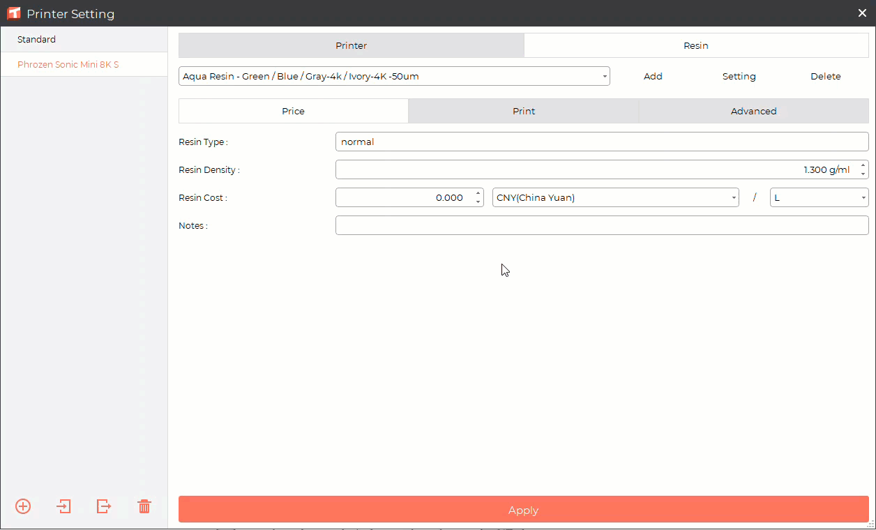 - 选择档案“Phrozen Sonic Mini 8K S.vdpcfg”>开启>应用。