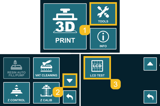为确保 Sonic Mega 8K S 的 LCD 工作正常,您可以执行 LCD 测试。此测试可以检查打印机的照明和遮蔽功能是否正常。以下步骤将指导您如何在 Sonic Mega 8K S 上进行测试。