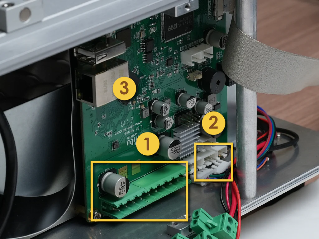 - 松开三颗螺丝,将主板重新安装到打印机上