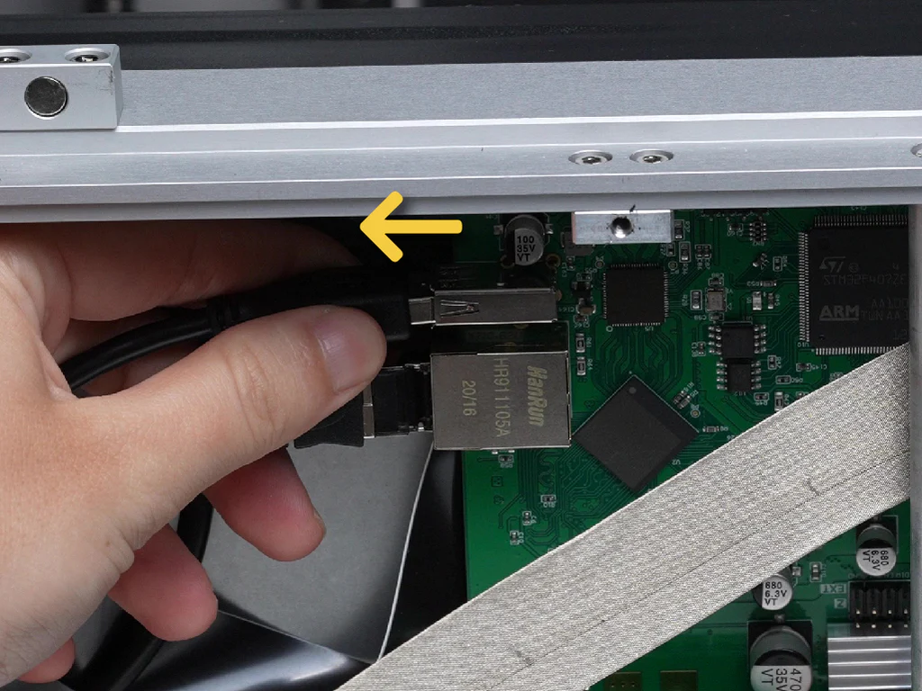 - 将带线电缆插入放置LCD屏幕的玻璃旁的缝隙中(确保排线不会阻挡LED灯)