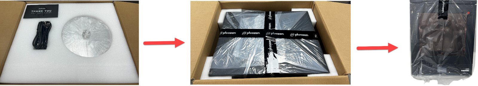 按照上述说明,您可以轻松拆箱 Cure Mega S。如果您发现任何问题,请随时联络Phrozen 客服人员或您的授权经销商以获得进一步协助。联络Phrozen 客服人员时,请发送一些说明问题的照片或视频。