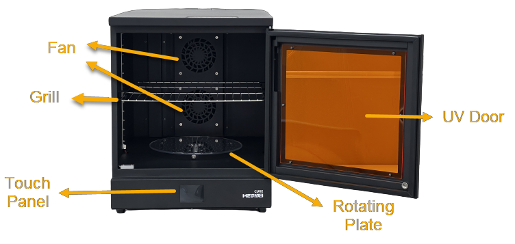 欢迎来到 Cure Mega S,这是一个高生产力、大规模生产的专业固化站。为了帮助您充分利用固化站,本文将引导您了解其硬件和组件。阅读本文后,您将更了解 Cure Mega S 并准备好开始后期处理。