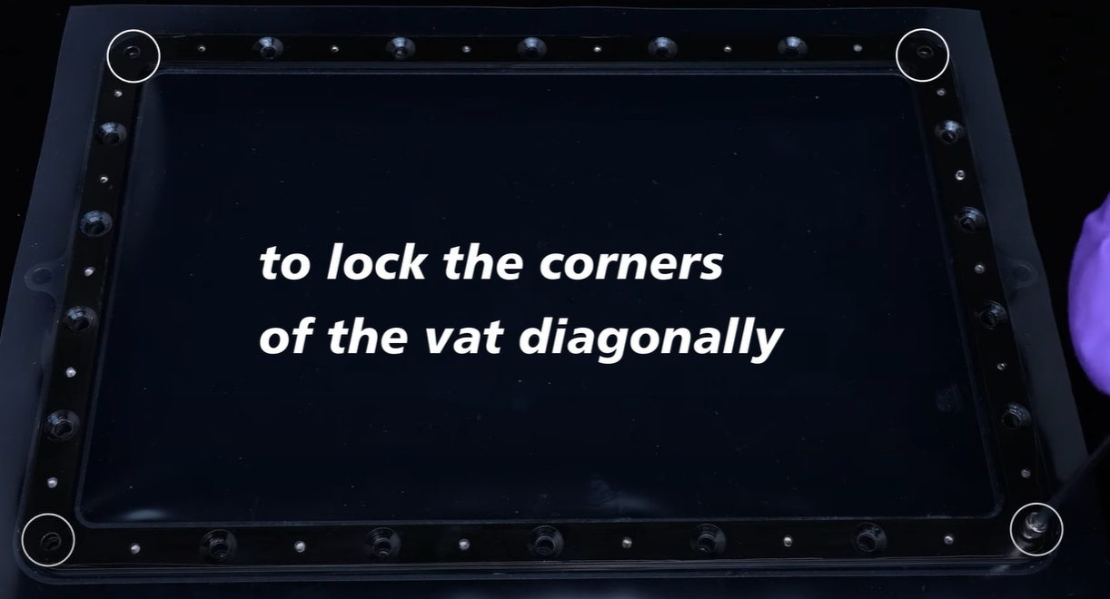- 将新安装的FEP膜框放回树脂槽中(带有斜角的孔应该指向上方)