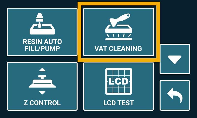 - 点击 工具(TOOLS),然后点击 清理料槽(VAT CLEANING)。
