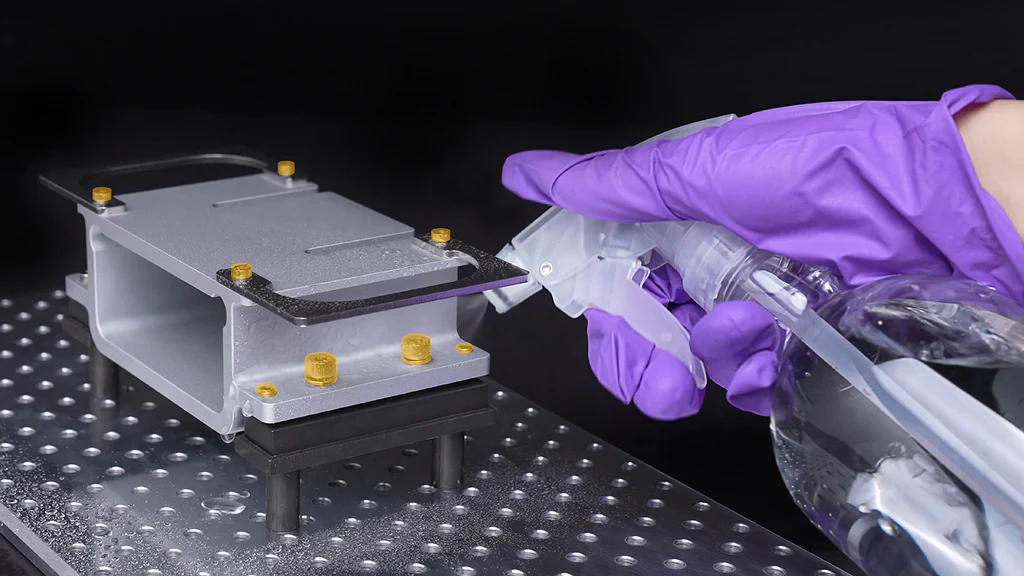 - 移除载台,并使用95%浓度的消毒酒精清洁载台与LCD屏幕上剩余的树脂。