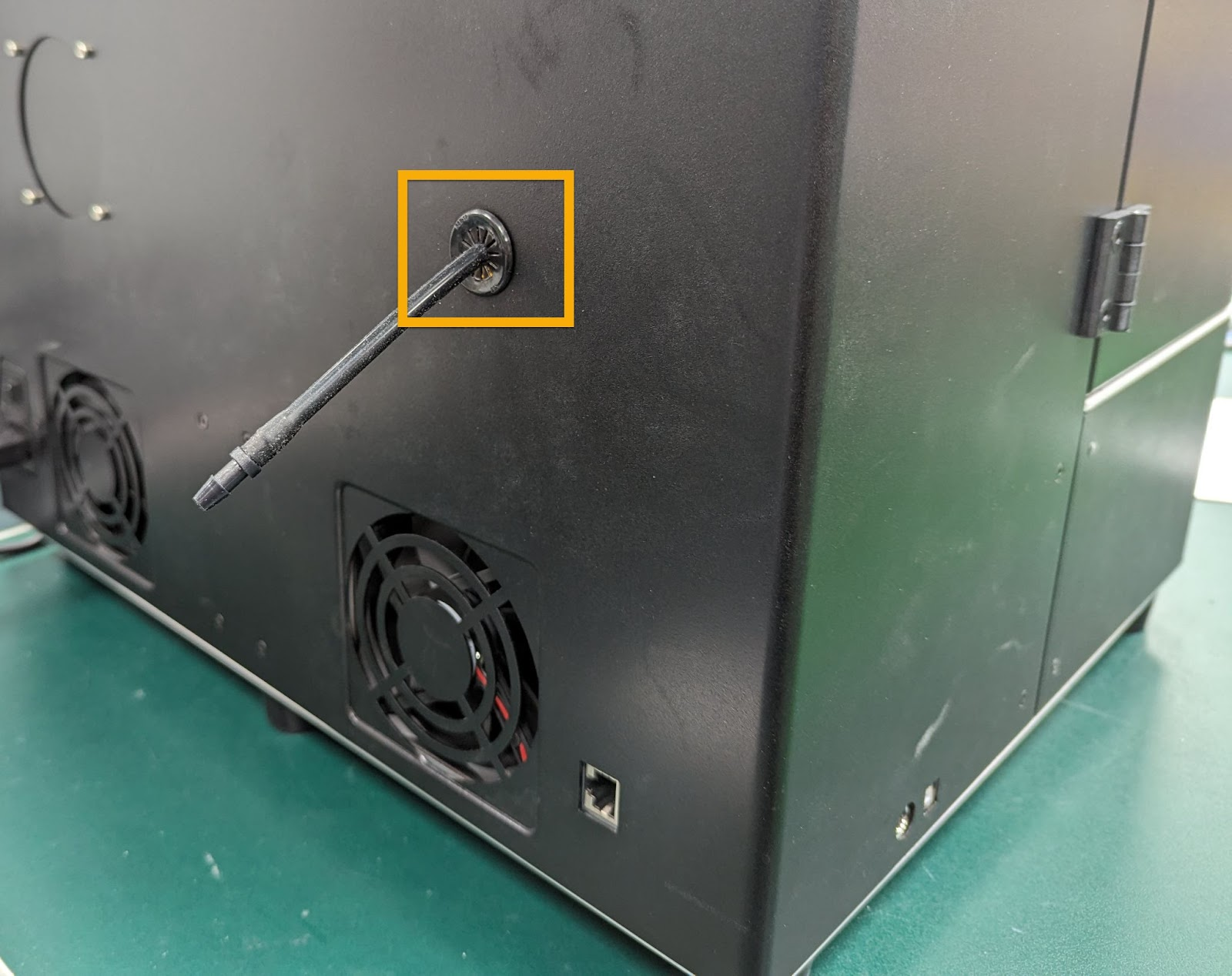 如果安装了填充管,请从打印机背面取下注料机和注料管。