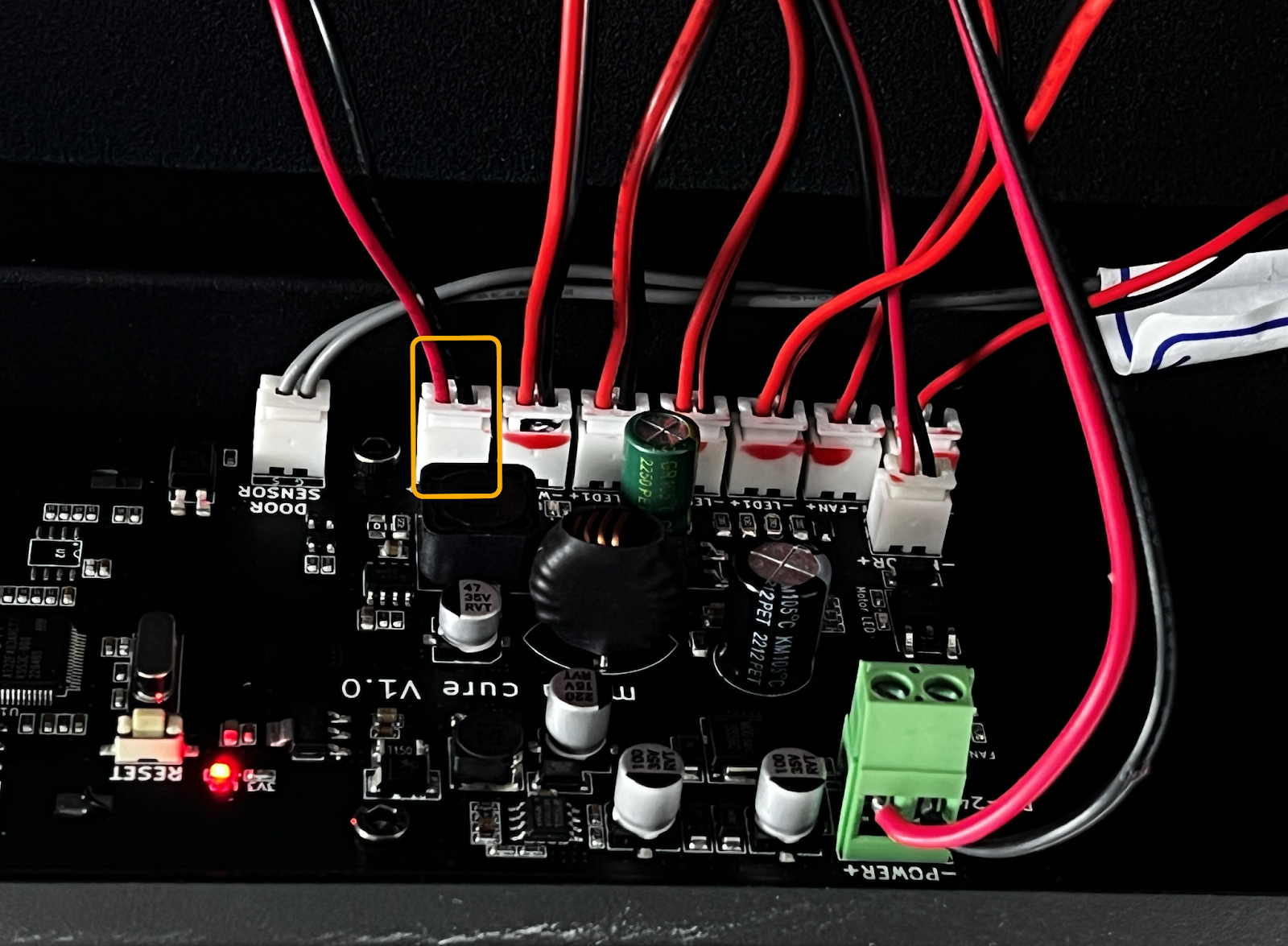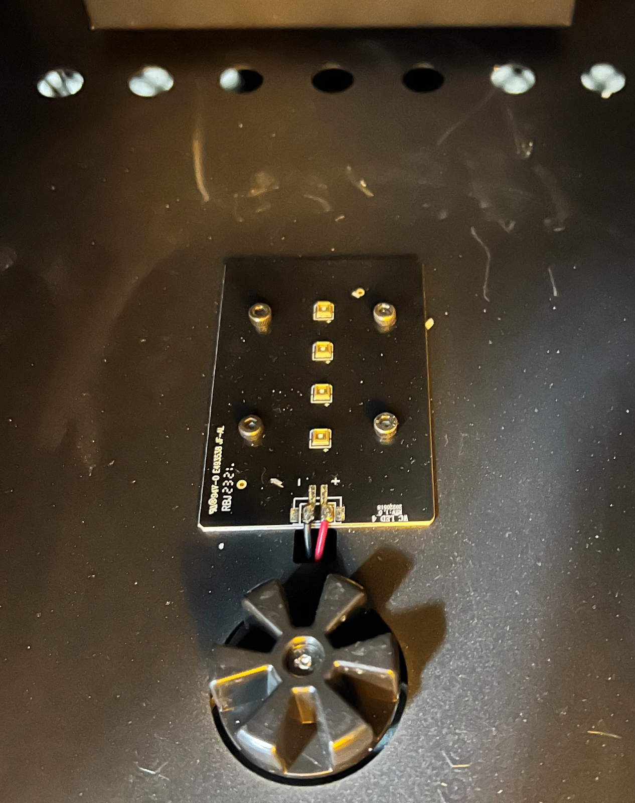 - 重新插入连接到新的LED数组和主板的电线。
