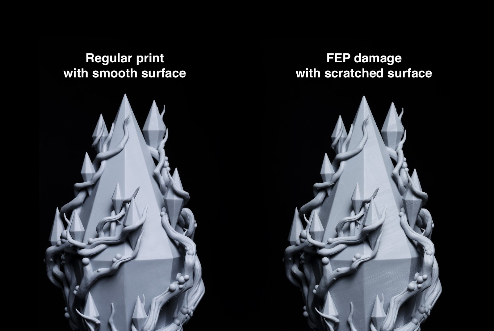 离型膜(FEP膜、nFEP膜)属于消耗品,使用一定时间后需更换。我们如何知道是时候更换呢? FEP 或 PFA (nFEP) 膜需要更换的情形如下: