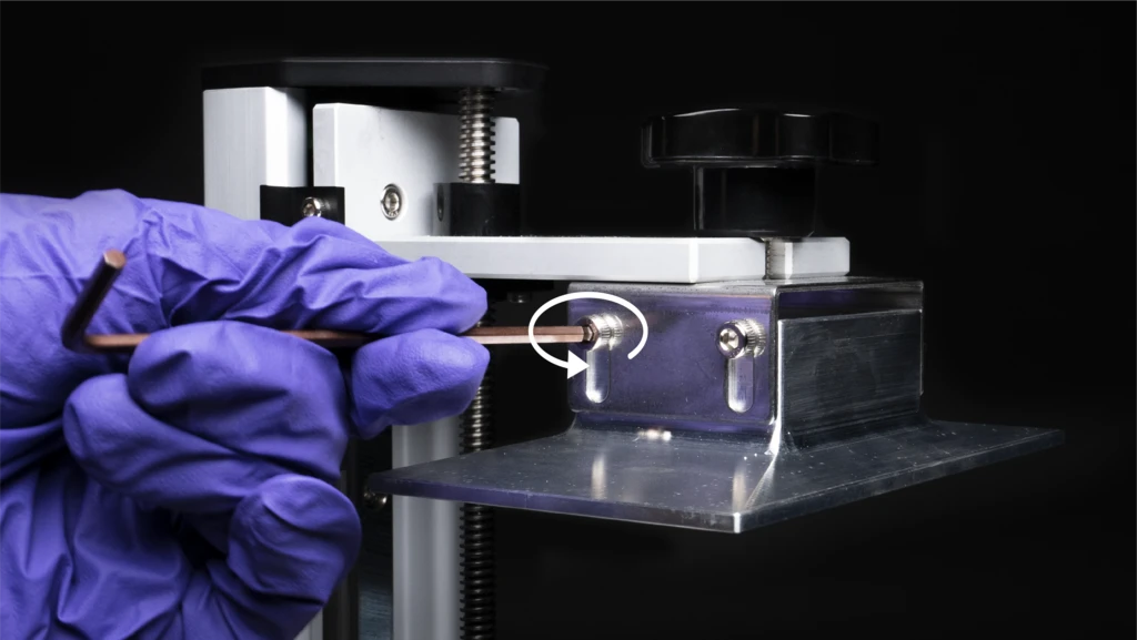 - 使用扳手松开载台两侧的4个螺丝,确保平台可移动。
