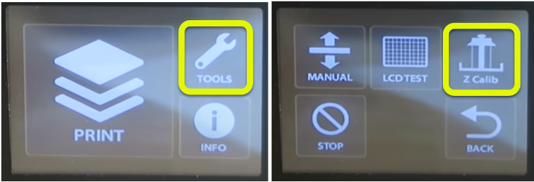 - 在触控面板上点击「工具」>「Z轴校准」。