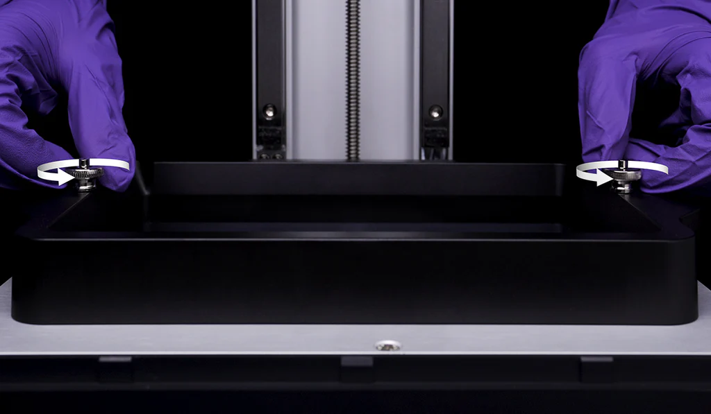 - 取下树脂槽,确保机器平台上没有任何物体。