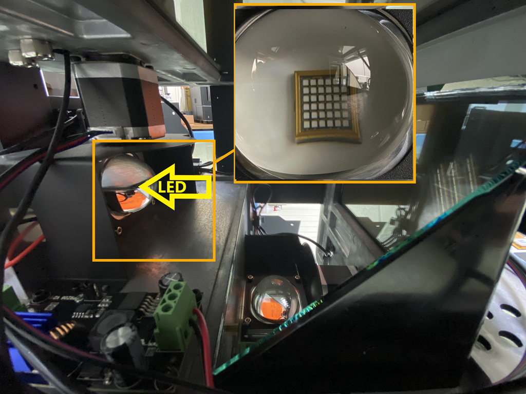 - 拍照 LED 芯片 (COB) 確認是否有任何燒毀的 LED