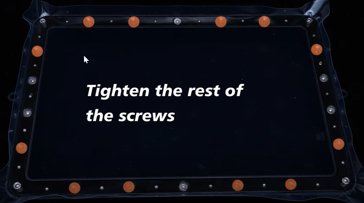 - 鬆緊每邊中央的6個螺絲,交替夾在相對的螺絲之間