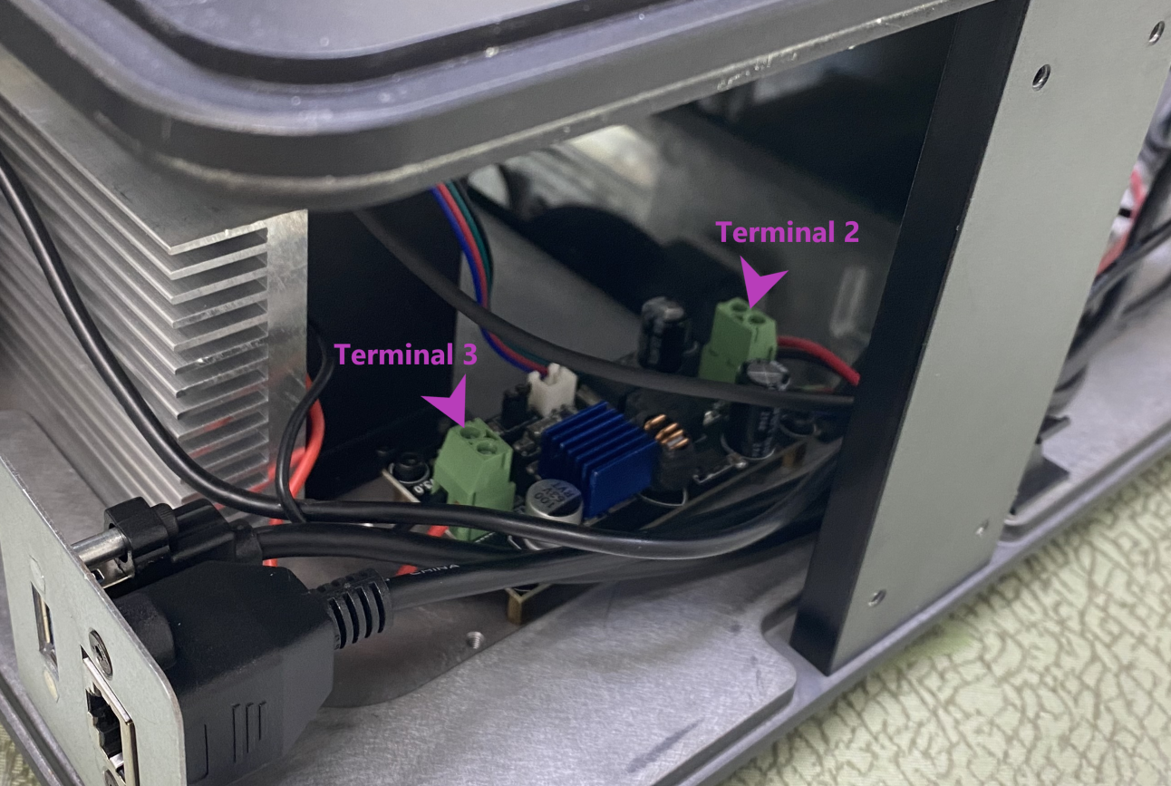 LED由三組電線組成。一對連接到主板,另外兩對連接到LED驅動板。也就是說,端子1是主板上從左邊數起的第二個塊,而端子2和端子3位於打印機背面的LED驅動板上。