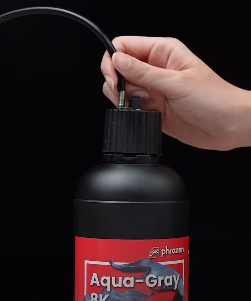- 將料罐蓋緊固在 Phrozen 樹脂瓶上。