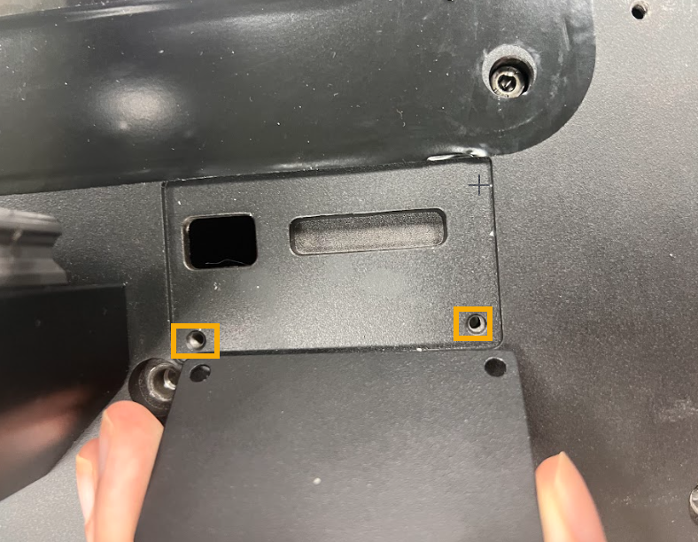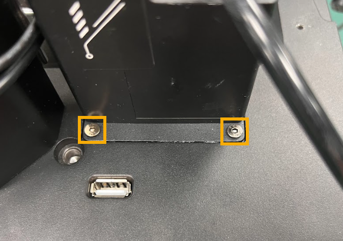 - 使用 H2 六角扳手拆下固定自動注料機蓋板的兩顆平頭螺絲。