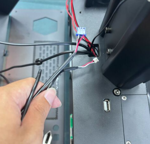 - 將新感應器線組的藍色接頭從 Z 軸後方的孔穿過。