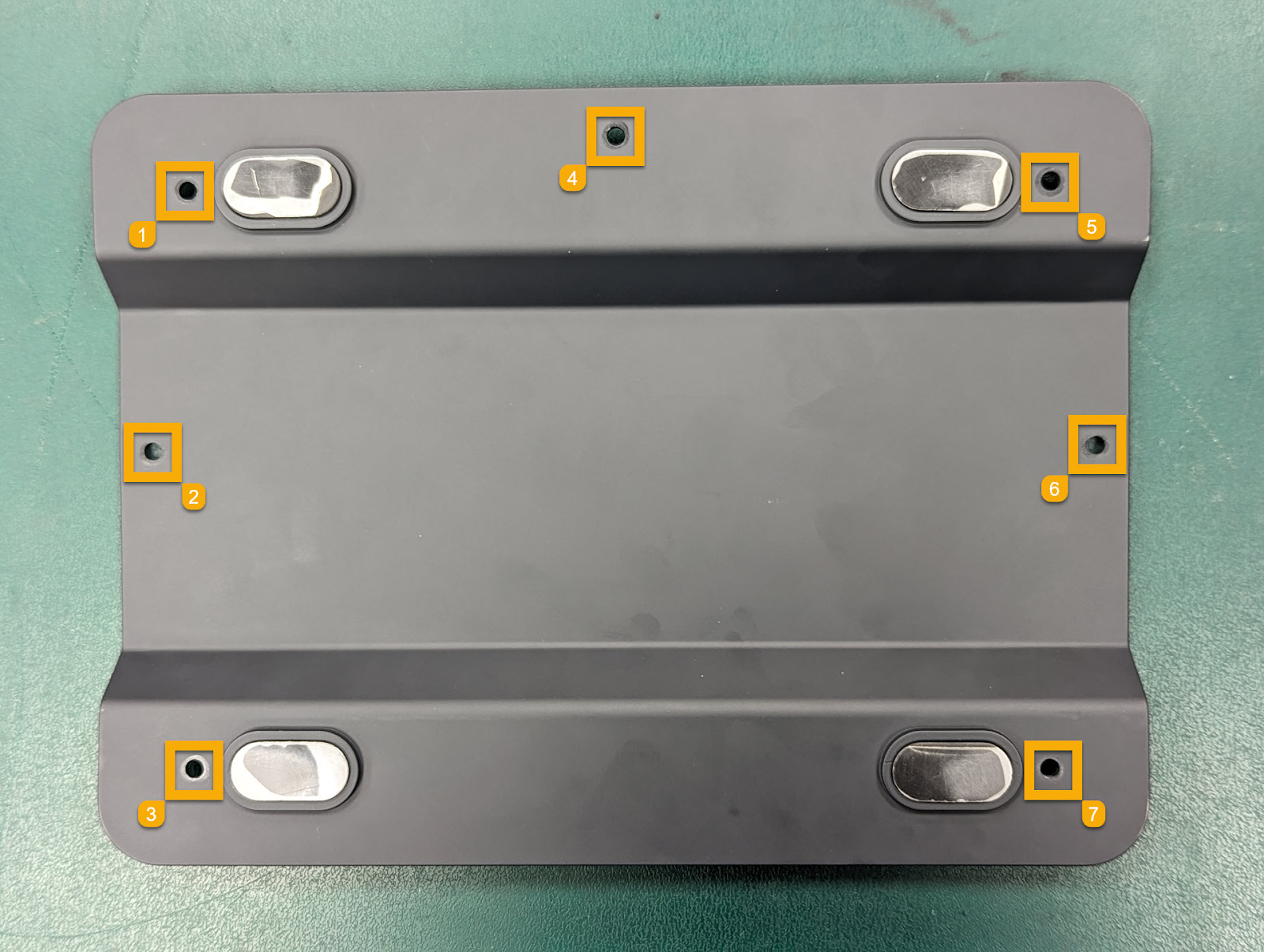 - 使用 2.5吋 六角扳手鬆開 7 顆螺絲並拆下底殼。
