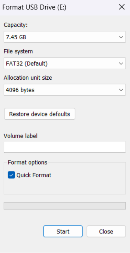 - 將 USB 隨身碟格式化為 FAT32,配置單位(Allocation Unit Size)請選擇 4096 bytes。