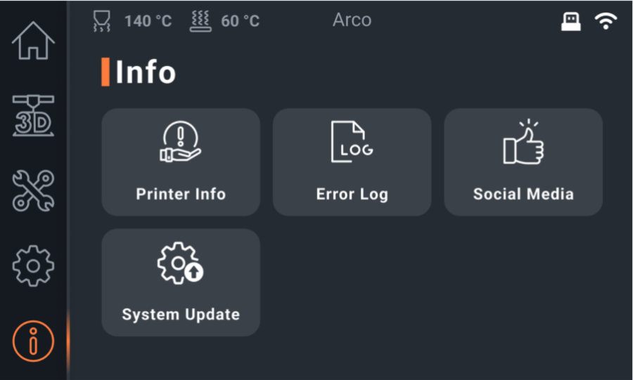 - 重新開機後,點選左下角的 「i」資訊頁,並點擊列印機資訊,確認韌體版本是否已成功更新至最新版。