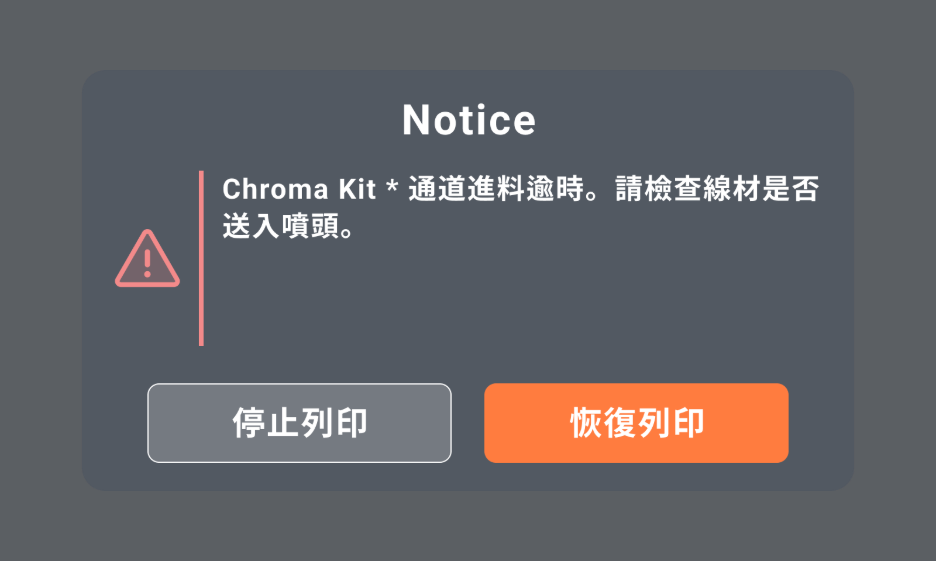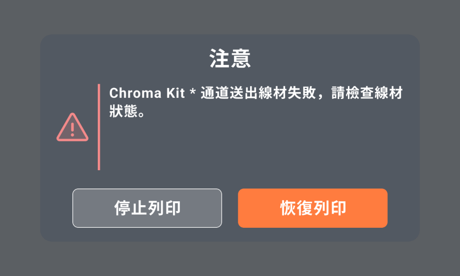 在使用多色列印模組(Chroma Kit)的過程中,可能會遇到各種異常狀況。不同情境通常對應不同的可能原因與解決方法,以下將針對常見問題進行分析,並提供自我檢查與排除建議。