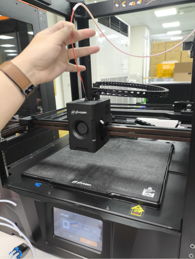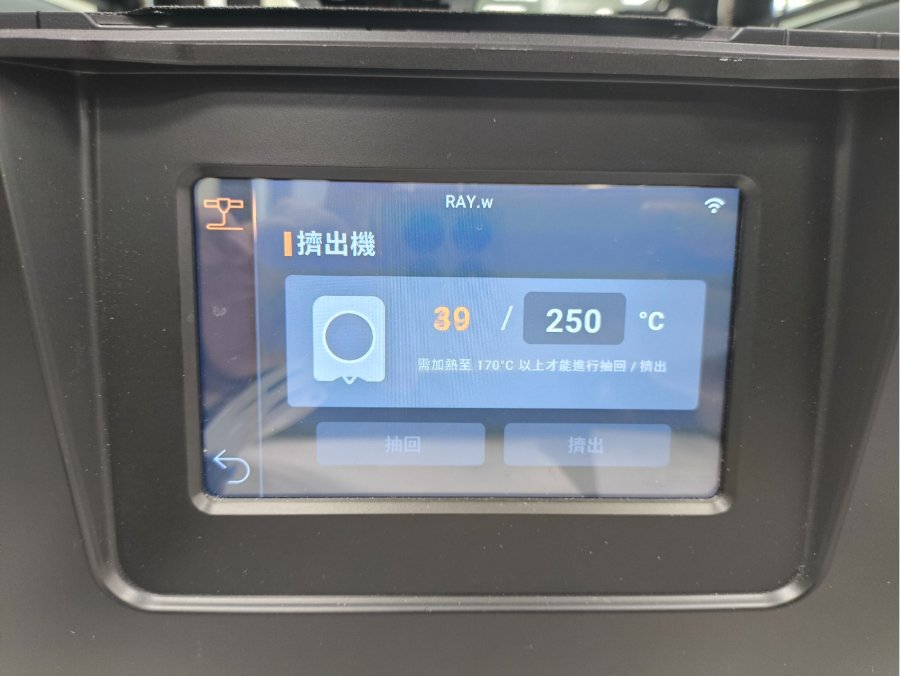 - 在擠出機控制介面上,將線材加熱至 250°C。