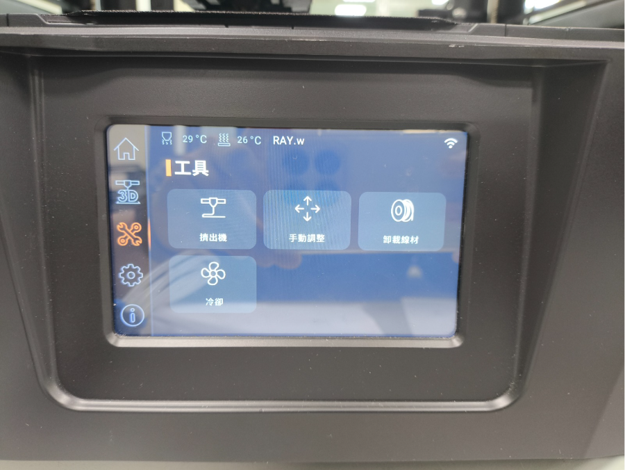 - 手動推送線材,並額外點擊 1~2 次擠出按鍵,直到熱端擠出的線材完全轉換為新線材。