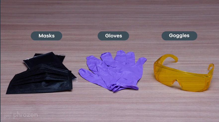 由於直接接觸樹脂可能引起過敏反應,我們建議在列印時戴上個人防護裝備,如口罩、護目鏡和手套。